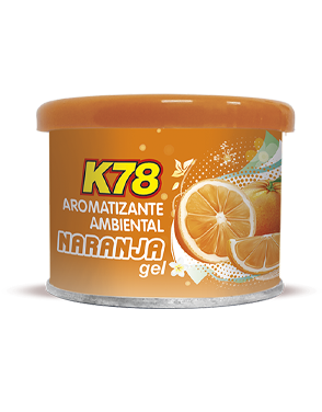 Aromatizante en Gel K78 para autos y ambientes. Su fórmula asegura una fragancia suave y fresca en el ambiente a aromatizar durante 30-45 días.